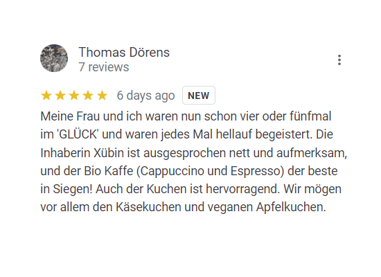 Siegen Cafe HandwerkenSiegen CafeKuchen im Cafe Siegen, Matcha KäsekuchenKuchen, Moehre, Sahne, Quark Kuchen im Siegen CafeKuchen, Japanischer Käsekuchen im Café SiegenCafe Siegen: Kuchen, Biskuit ErdbeereCoffee Tasting im Bio Cafe SiegenZucker, Stevia, Bio Honig im Siegen CaféToilette im GLÜCK Cafe SiegenMatcha Latte, Siegen, Bio KaffeeBio Matcha Cappucino, Café SiegenMilchkaffee, Bio SiegenBio Schoko Banane KuchenKaffee Americano Bio Kaffee SiegenMilchkaffee im Cafe SiegenWaage Cafe Siegen 18 GrammXuebin im Cafe Siegen GLÜCK, ThekeLatte MacchiatoMonin Flavor Cafe Siegen, GratisMilch im GLUECK Cafe SiegenKaffeebohnen im Cafe Siegen – Cofi Loco,Niche Zero im Cafe SiegenCafe Siegen Waage Tamper Cafe Siegen und Siebträger ProfiTec Pro 800 im Cafe GLÜCK SiegenBio Haferflocken, Siegen Cafe GlückCafe Siegen Zutaten, KakaoZutaten Vanillezucker, GLÜCK Cafe SiegenBIY Ecke, Cafe SiegenCafe Siegen Nespresso VertuoESE Pad Maschine, Cafe SiegenDrip Bag im Cafe Siegen, GLÜCKHario V60 Filter im GLÜCK Cafe SiegenFrench Press, Cafe SiegenCafe Siegen, Süße AuswahlMilch im GLUECK Cafe SiegenCafe Siegen GLÜCK, Bio Tee OolongCafe Siegen Rabatt für StudentenSchlagsahne im Cafe Siegen — GratisCafe Siegen GLÜCK: COFI LOCOGLÜCK Cafe Siegen, AußenansichtCafe Menü: Bio Fruchtriegel, SiegenCroissants in SiegenCafe Siegen Kuchenauswahl: ApfelKäsekuchen im Cafe SiegenBio Teebeutel in Siegen, Cafe GLÜCKSencha Sincha Tee Siegen, Cafe SiegenCafe Siegen Menu, Tee, Goji und KamilleKaffee, im Cafe Siegen, auch TOGODummy Icon, Cafe SiegenMenü Siegen Cafe: FilterkaffeeCafe Siegen, Espresso Cappuccino im Cafe SiegenCOFI LOCO im Cafe Siegen (Flaschen)GLÜCK Icon Café SiegenTheke im GLÜCK Cafe SiegenCafe Siegen – GLÜCK (Logo)